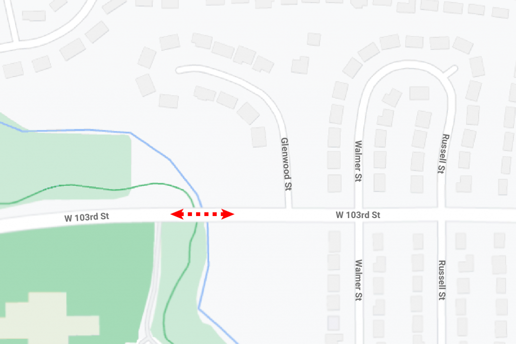 103rd St. will close to traffic both ways for several weeks this spring near Metcalf. The bridge over Indian Creek will close for rehabilitation beginning Monday, April 3.