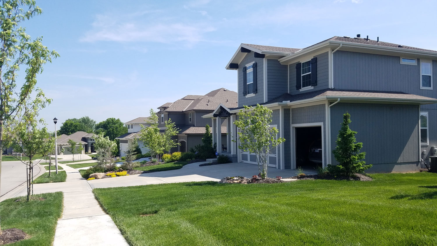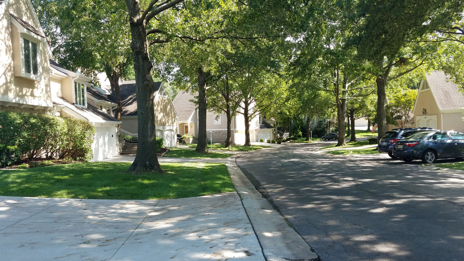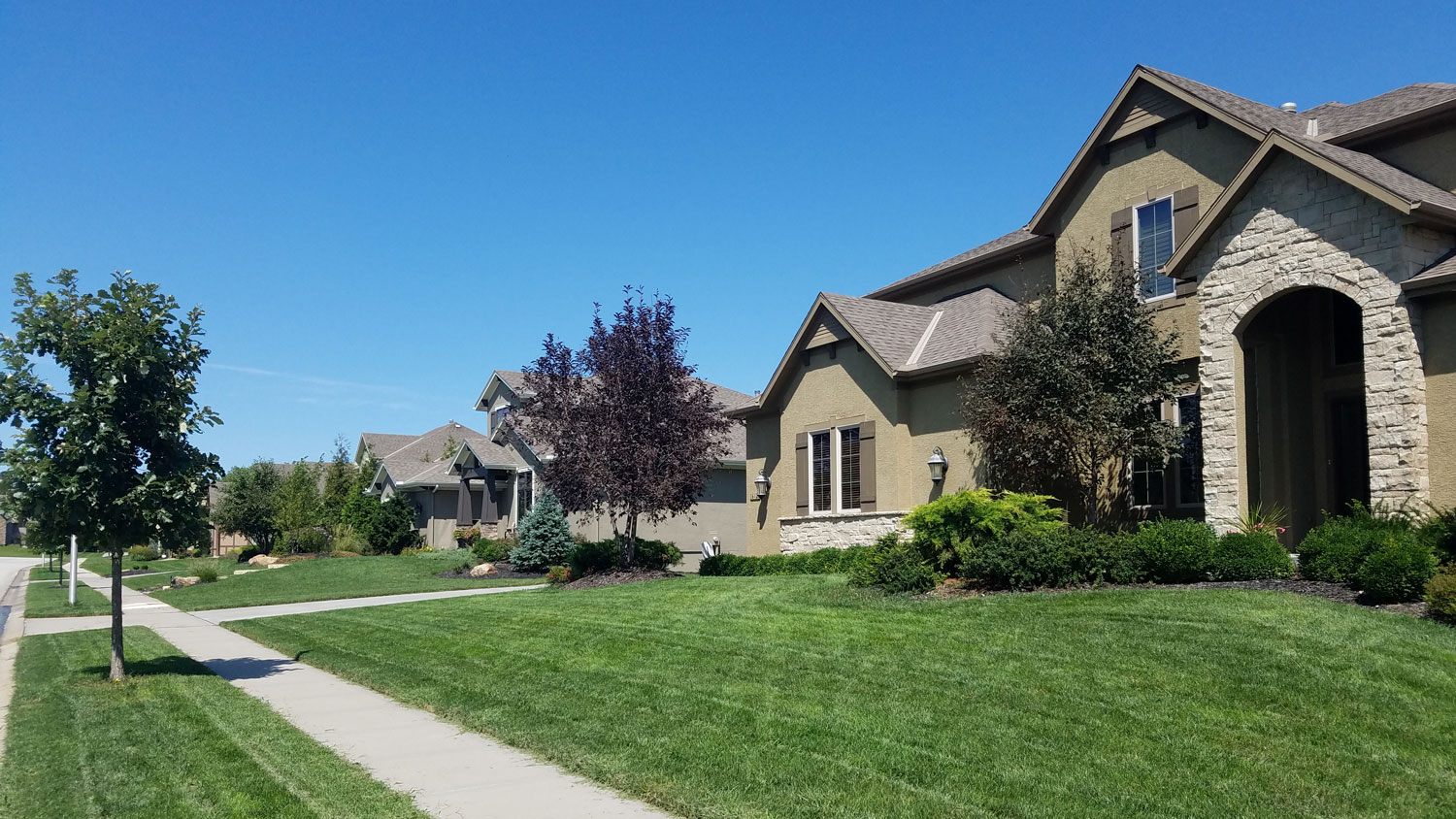 Suburban Neighborhoods primarily consist of single-family homes within planned subdivisions, making them the most common residential character type in Overland Park. These areas may also include small-lot single-family homes, duplexes and townhomes that serve as transitions between detached homes and nearby commercial areas or major roadways. Parks and schools are common features, contributing to a strong community feel. While many existing neighborhoods have curvilinear streets and cul-de-sacs, new developments should incorporate traditional block patterns to improve connectivity while preserving natural features and ensuring pedestrian and vehicular access to nearby amenities.