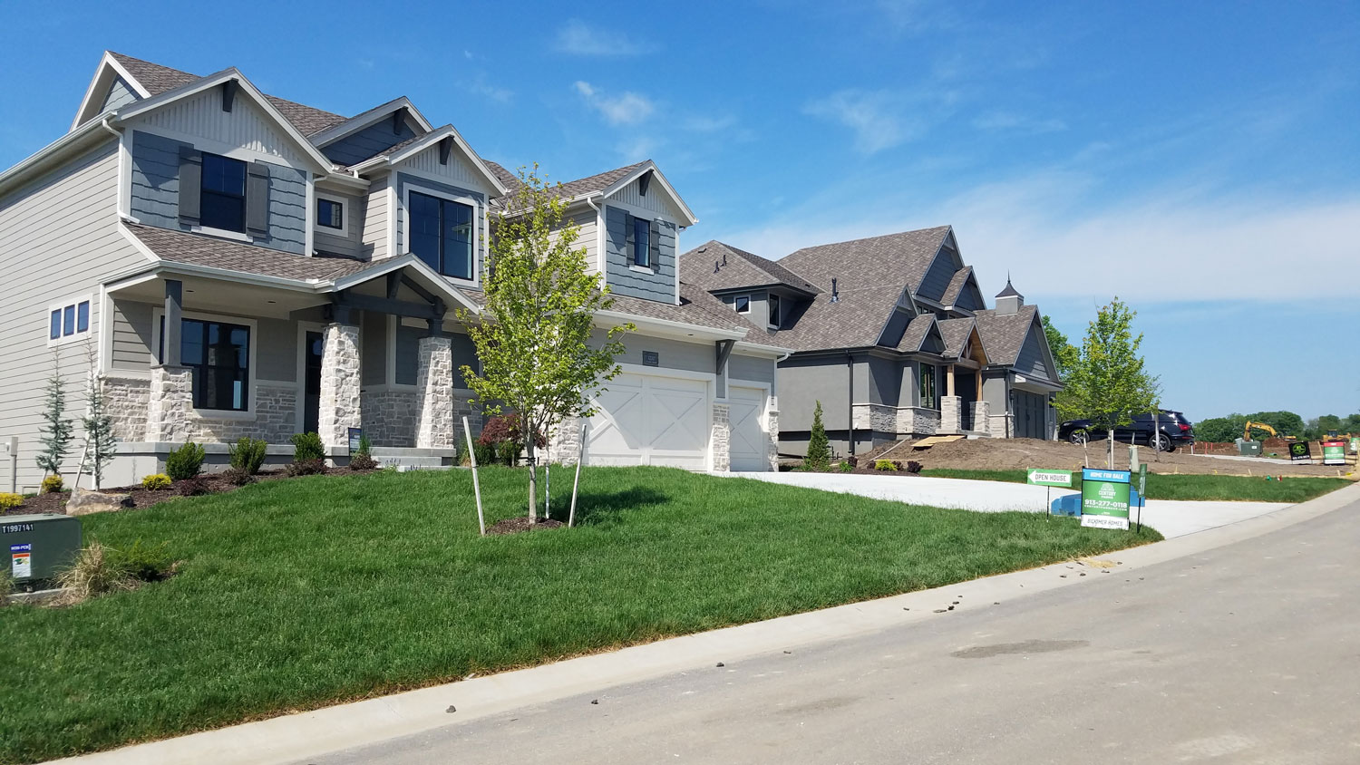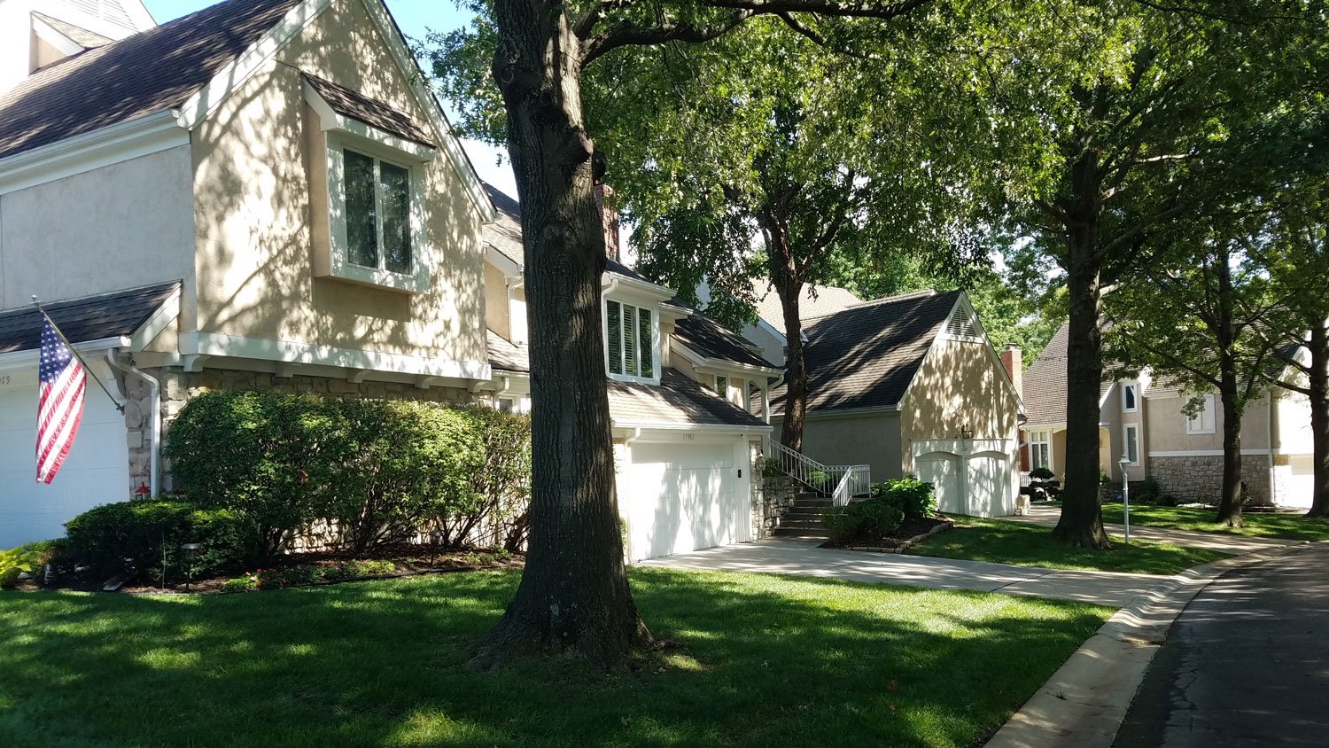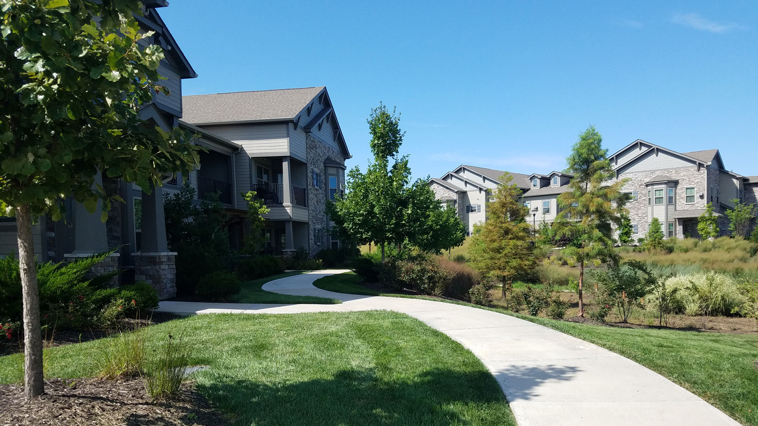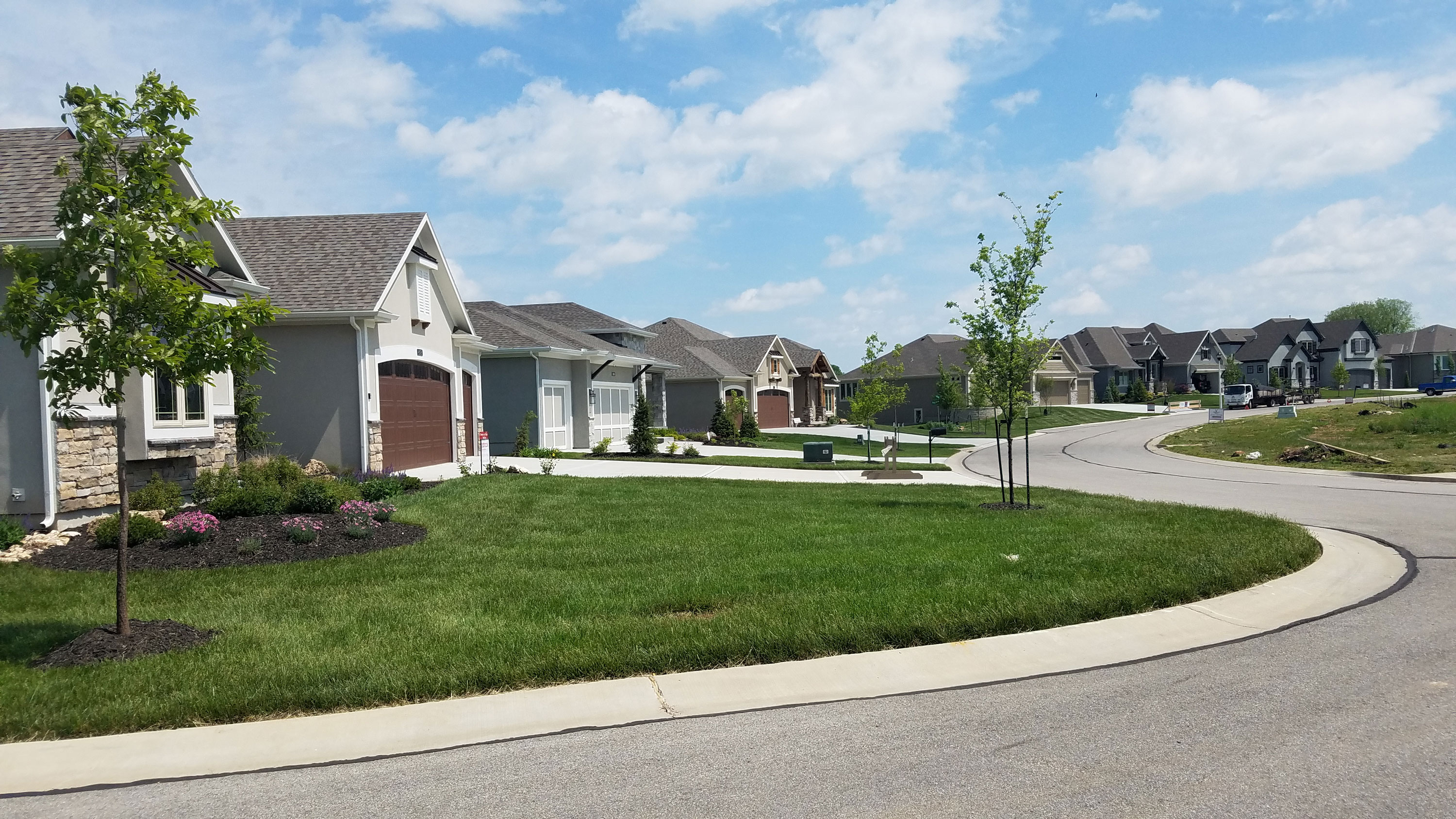 Suburban Neighborhoods primarily consist of single-family homes within planned subdivisions, making them the most common residential character type in Overland Park. These areas may also include small-lot single-family homes, duplexes and townhomes that serve as transitions between detached homes and nearby commercial areas or major roadways. Parks and schools are common features, contributing to a strong community feel. While many existing neighborhoods have curvilinear streets and cul-de-sacs, new developments should incorporate traditional block patterns to improve connectivity while preserving natural features and ensuring pedestrian and vehicular access to nearby amenities.