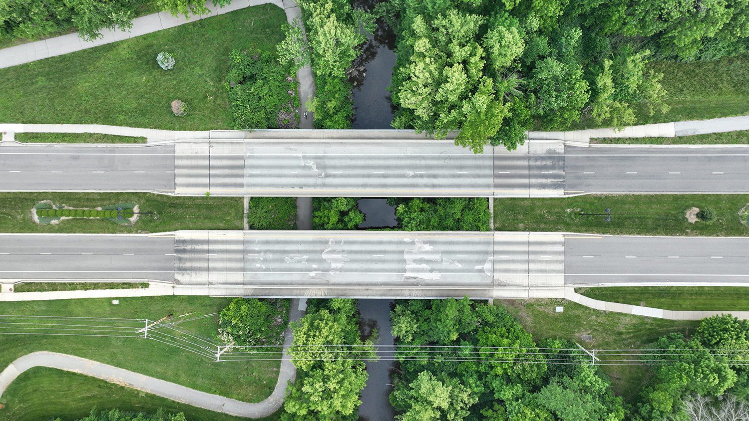 This project includes the construction of a new bridge on College Boulevard over Indian Creek between Mastin Street and Indian Creek Parkway/Grant Drive. The six-lane section of the current bridge will be replaced and bike/hike lanes will be added on both sides.