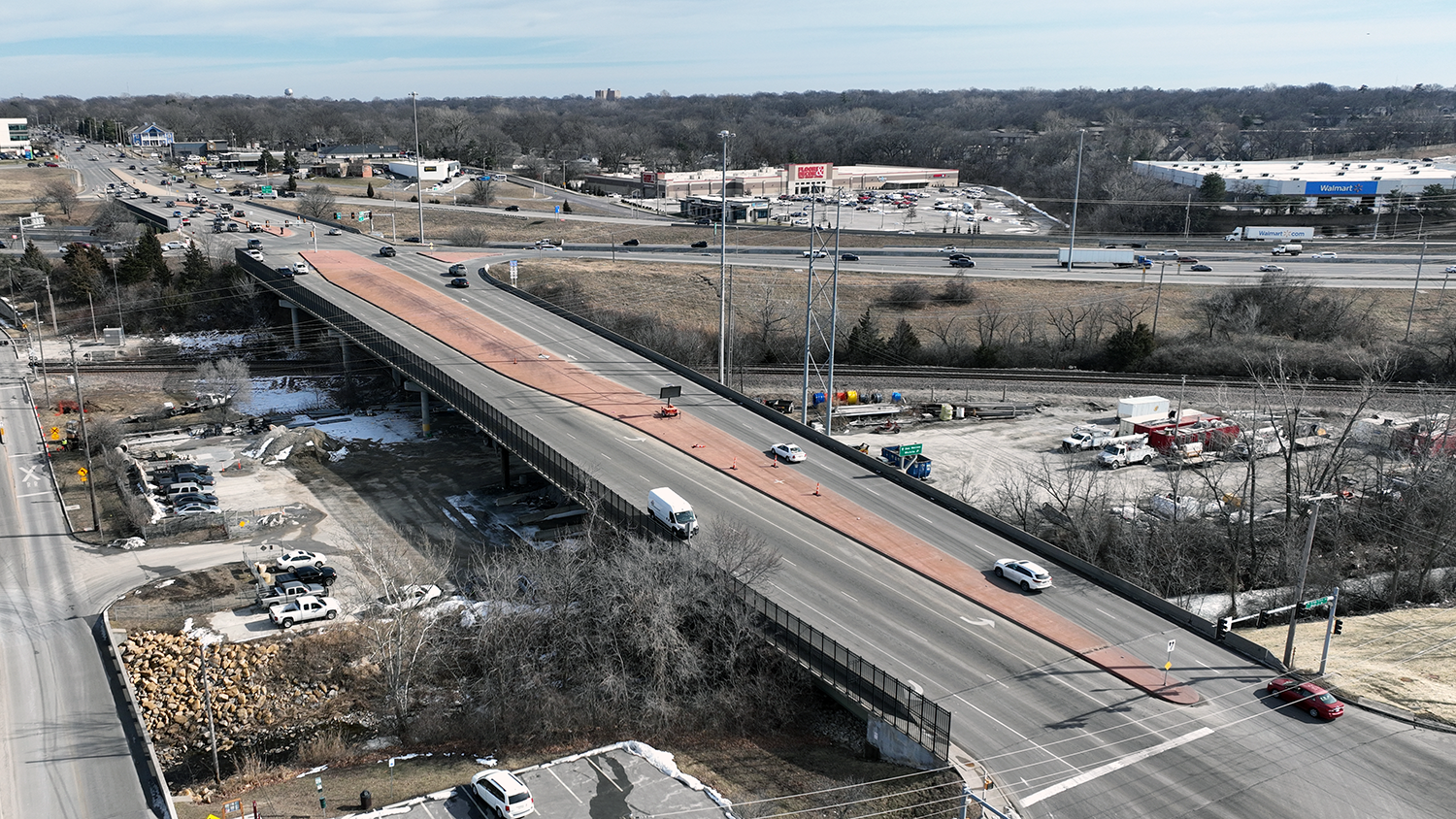 This project will construct two bridges connecting Quivira Road from 183rd to 187th and reconstruct Quivira Road from 179th to 183rd. The new roadway will include a two-lane undivided road with a shoulder, bike lane and a roundabout at 179th Street. A multi-use trail, street lighting, curb and gutter, storm sewers and landscape restoration are also included.