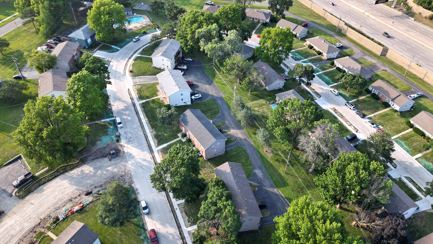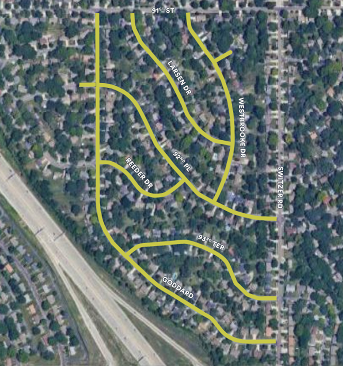 The Neighborhood Streets Reconstruction Program addresses the reconstruction of existing streets that have come to the end of their useful life. The project includes the removal and replacement of concrete curb and gutter, street pavement, sidewalks, streetlights, signs and storm sewer systems. Crews will construct new sidewalks and install new streetlights where applicable, in accordance with the Overland Park Municipal Code. Streets are selected based on current and historic Pavement Condition Index, Curb Condition Index, age, number of years since the last surface treatment and other relevant considerations.