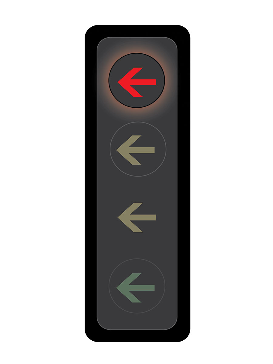 A solid red arrow indicates that drivers must stop and may not enter the intersection.
