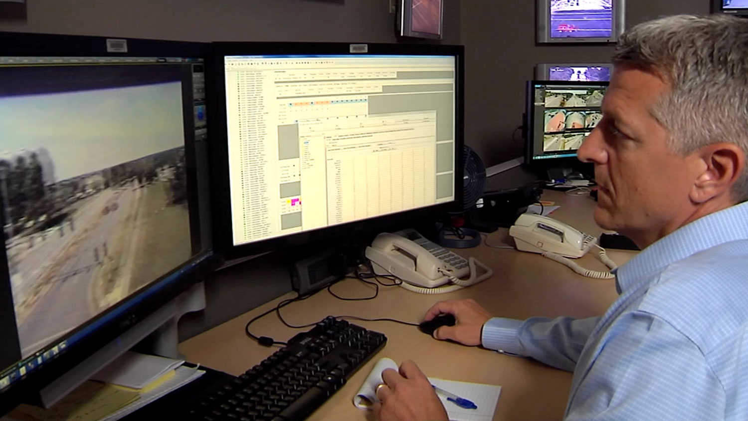 Staff use cameras and traffic data to evaluate traffic signal performance and remotely modify traffic signal operations as needed. They also post traffic-related messages on the city’s message boards to alert drivers of upcoming traffic incidents.