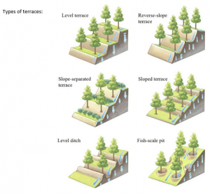 Terracing can reduce soil loss by 50% or more by breaking one long slope into several shorter, flatter sections.