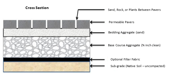 Permeable pavement should be used in areas that would otherwise be covered with an impermeable surface to be included in the cost share program.