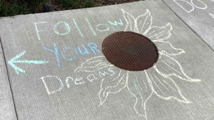 Chalk the Walk encourages members of the community to use chalk to brighten up their neighborhoods with drawings that anyone can see.
