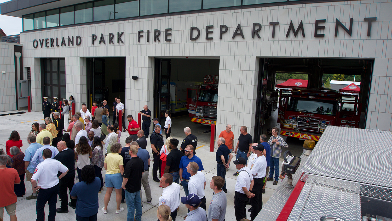 The City of Overland Park Fire Department held a hose uncoupling ceremony and open house on Friday, June 28 at the reconstructed Fire Station 41. The new facility, located at 7550 W. 75th Street, is built on the original Marty Memorial Station site and the adjacent property.