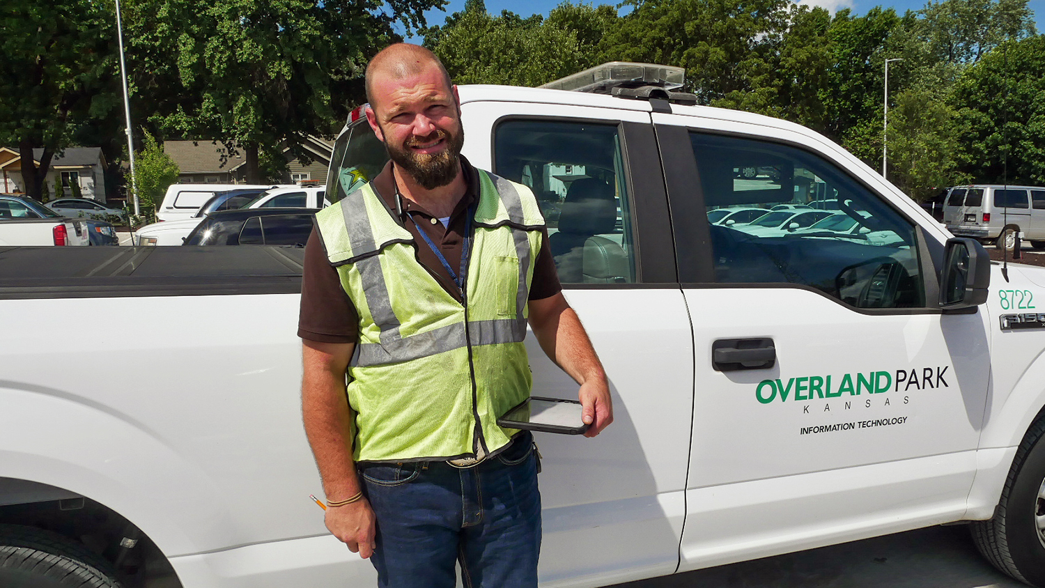 Recently, communications staff tweeted along with Oswald as he worked at different sites around Overland Park, from College and 69 Highway to the upcoming Fire Station. No. 8. His efforts included tracking underground fiber that supplies internet connection and serving security needs for City staff.