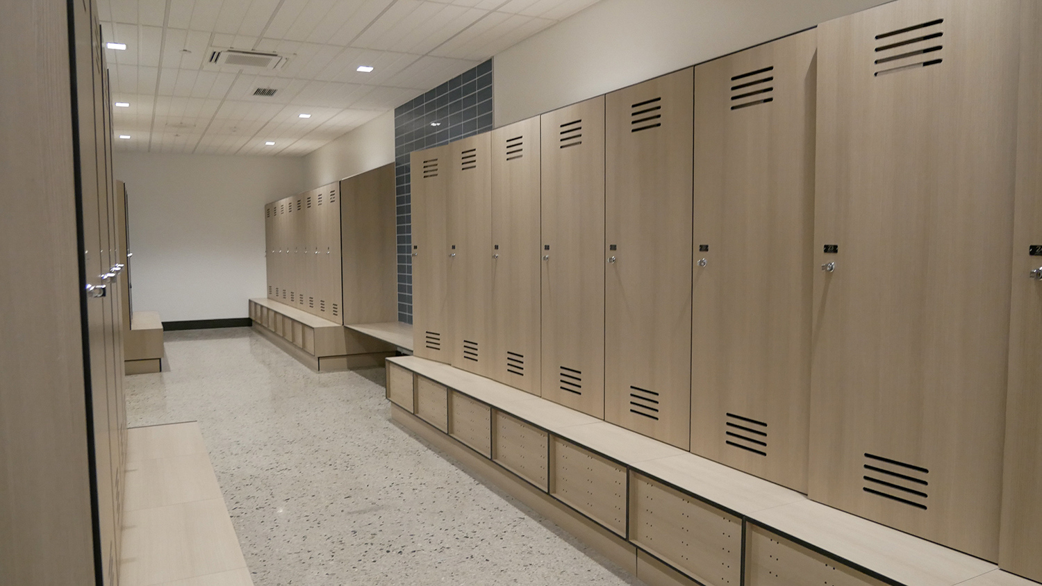 Transition spaces from “red zones,” where contaminated equipment is stored until it is cleaned, will provide an extra level of health and safety for fire crews in the building. Carcinogens in fire and smoke can attach to firefighters’ gear, so this ensures crews won’t bring them into their living space or take them home to loved ones.