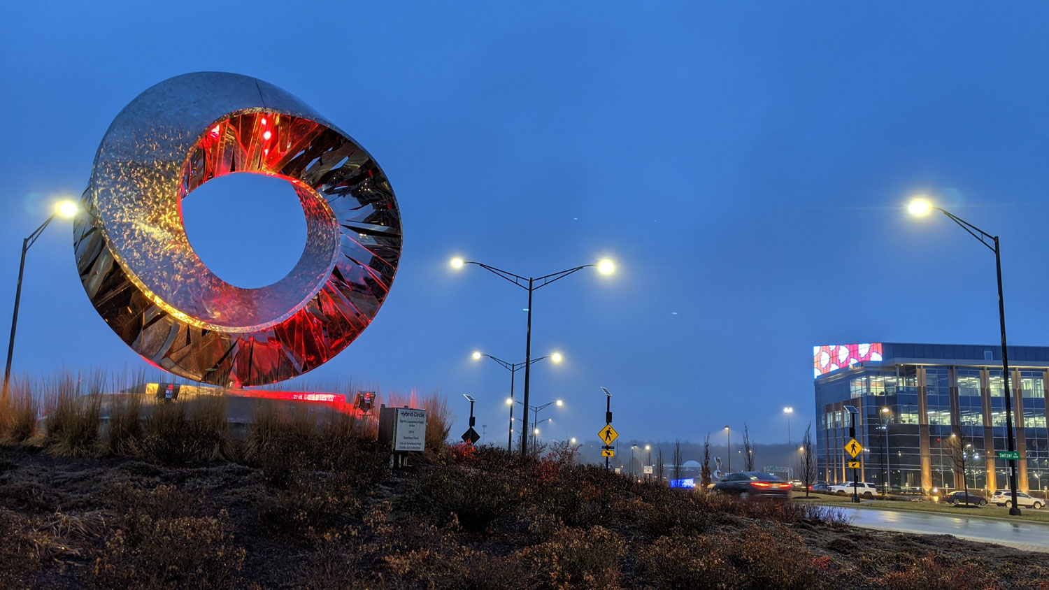 A sculpture in Downtown Overland Park of Overland Park founder William Strang is sporting its own custom jersey. Hybrid Circle, part of the City’s public art collection, is awash in red and gold light near 113th and Switzer. An applicant has requested a special event permit to display Chiefs-themed artwork on top of a private building in the City Place development.