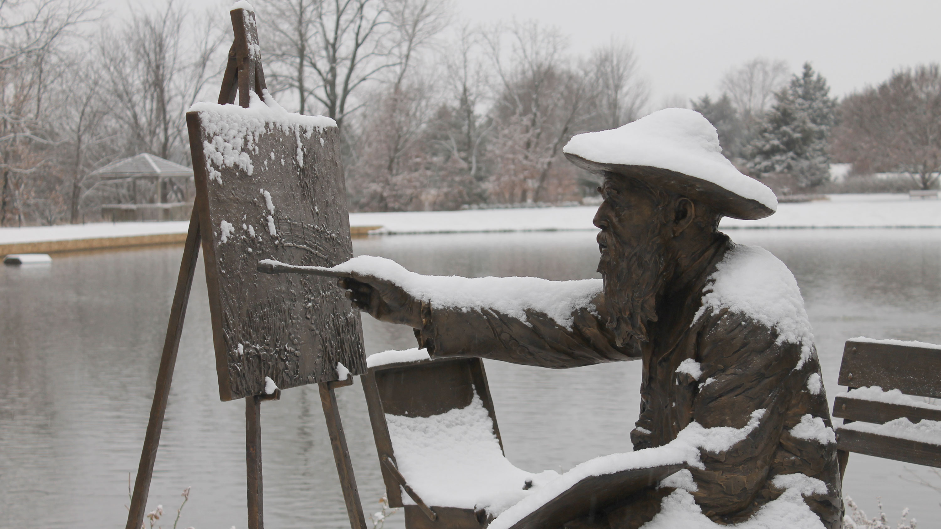 Overland Park Arboretum & Botanical Gardens:The Monet sculpture paints a less colorful scene than usual under a blanket of snow.