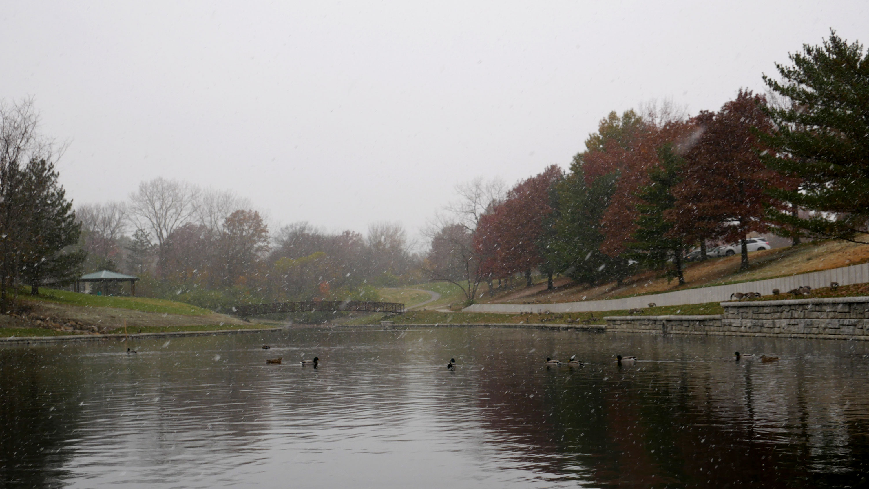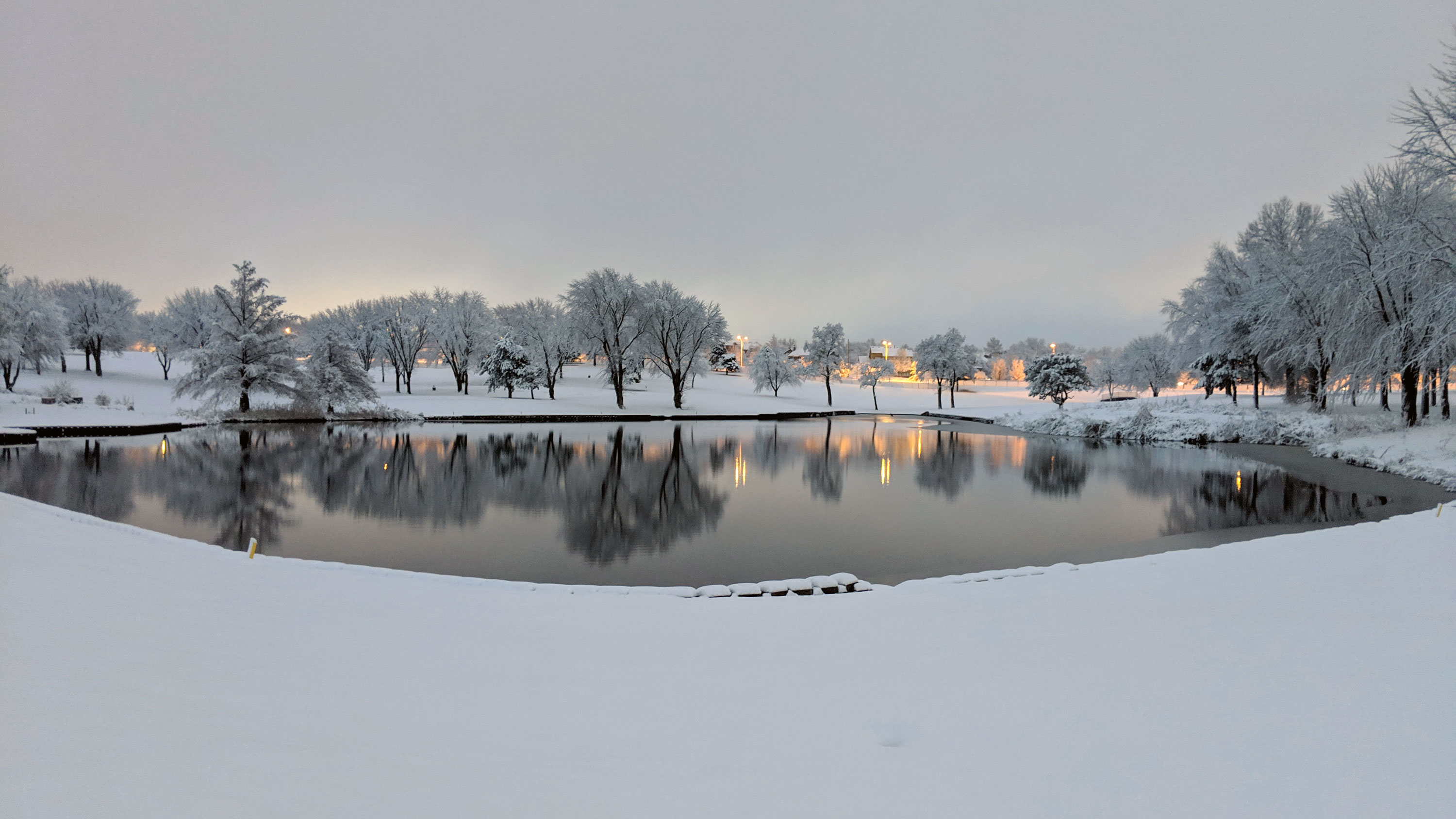 Summercrest Park: Summercrest Lake mirrors a winter sky while providing a spot for geese to roost.