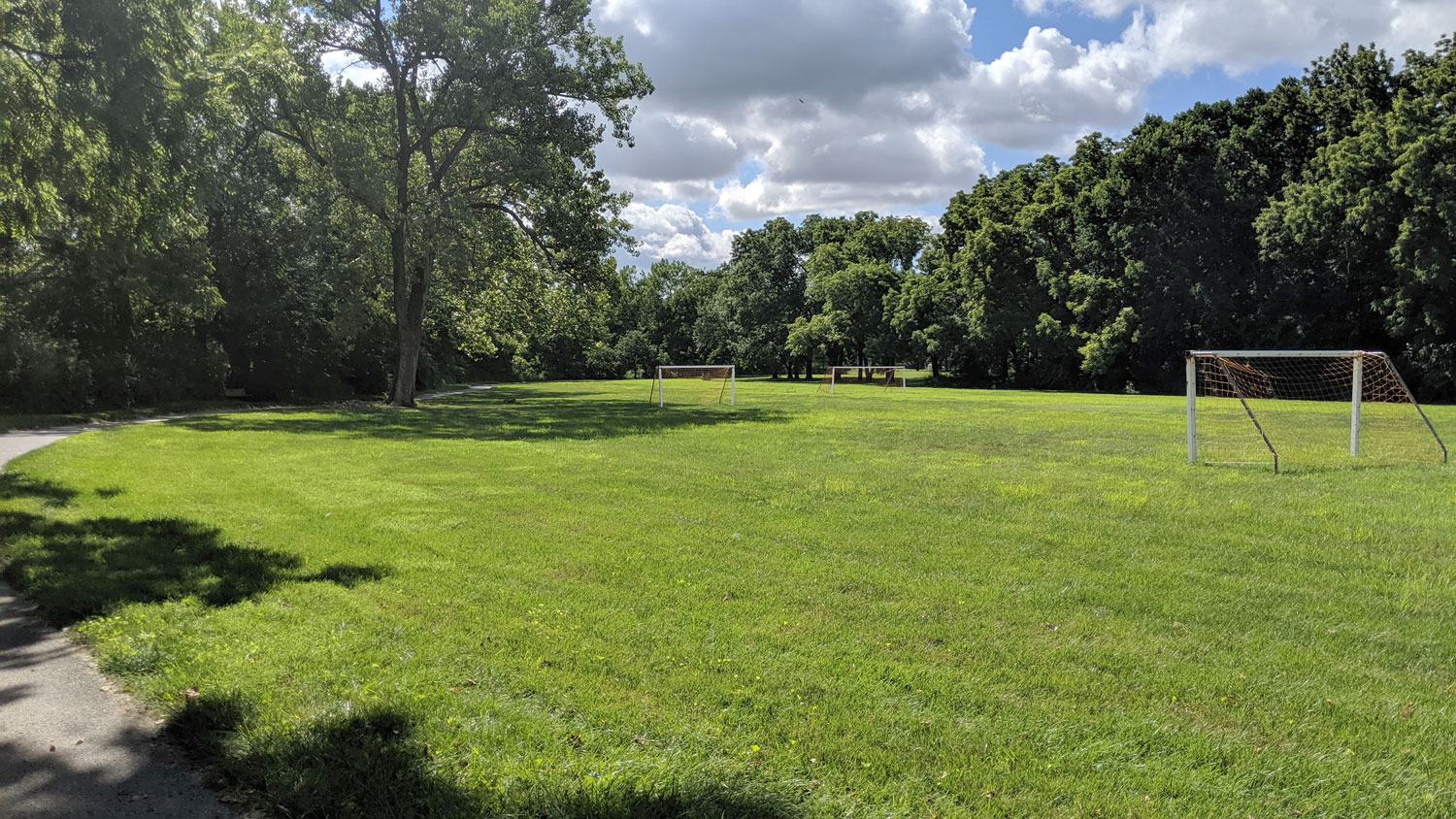 Nall Park is a 13.5-acre neighborhood park running along Indian Creek, featuring a flat portion of the bike/hike trail that leads east to Roe Park.