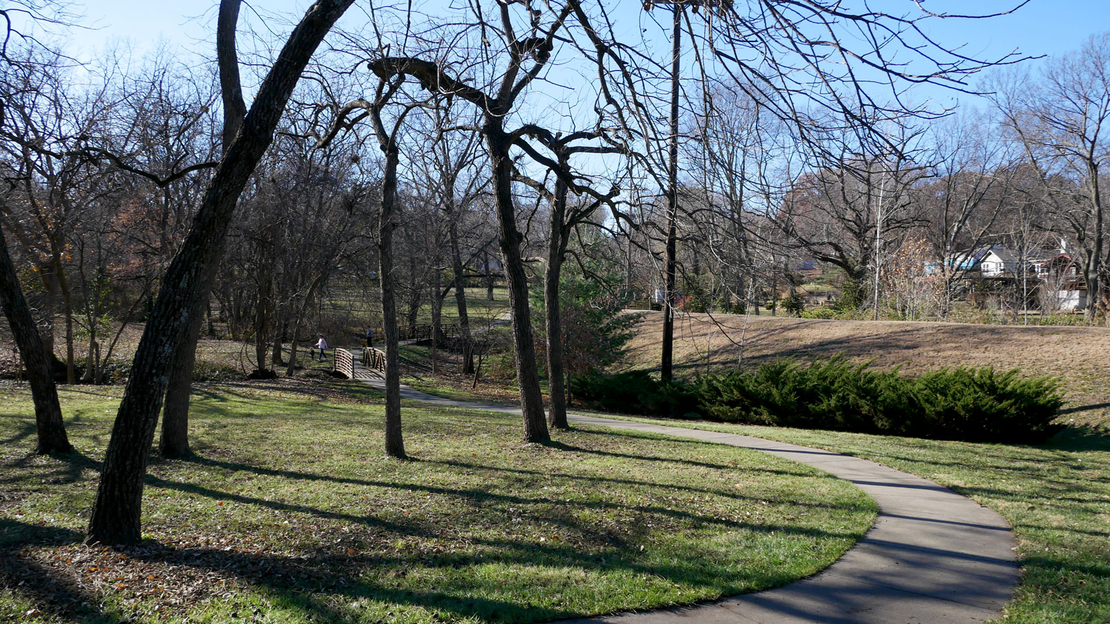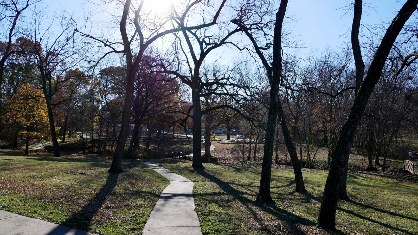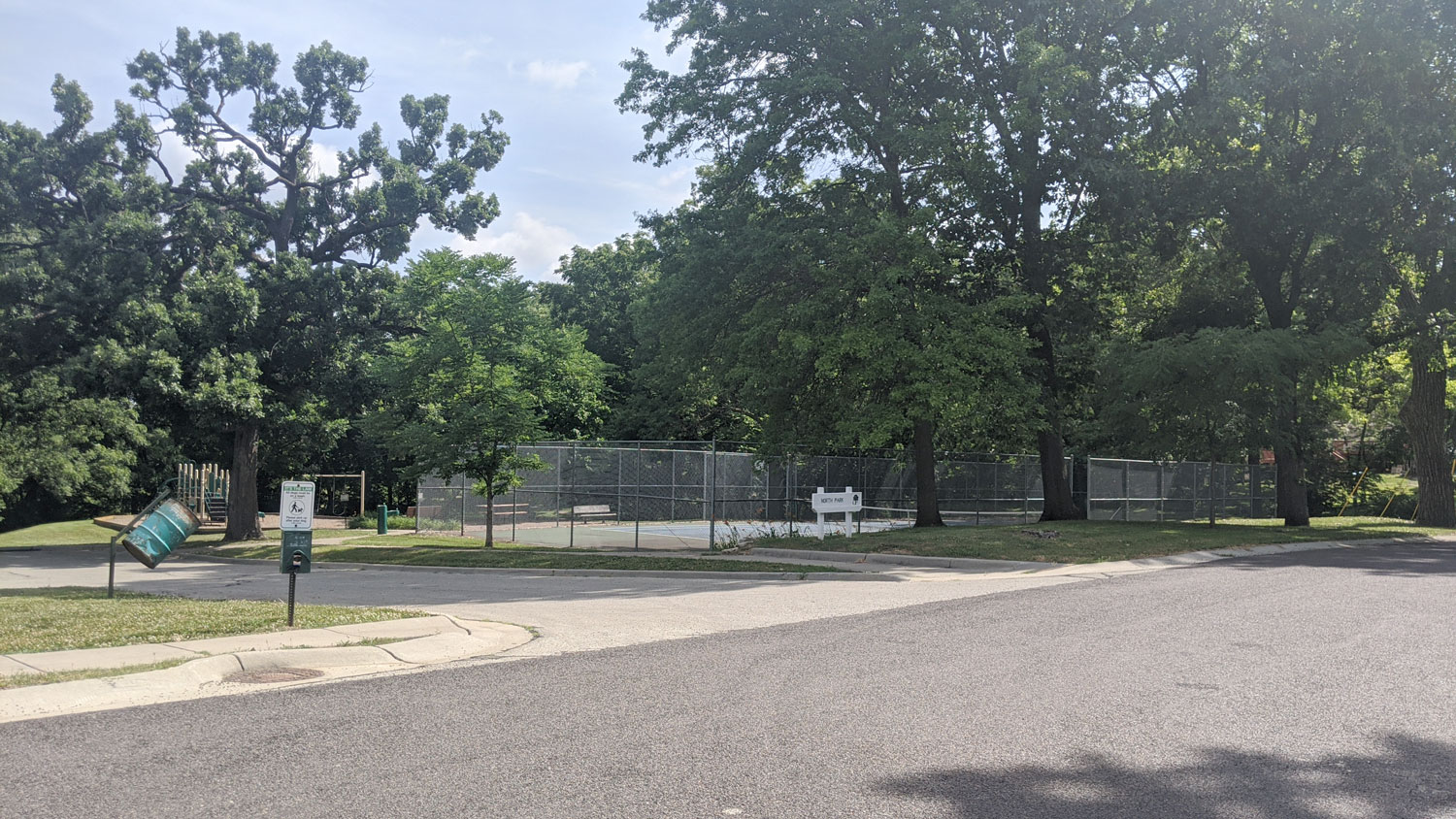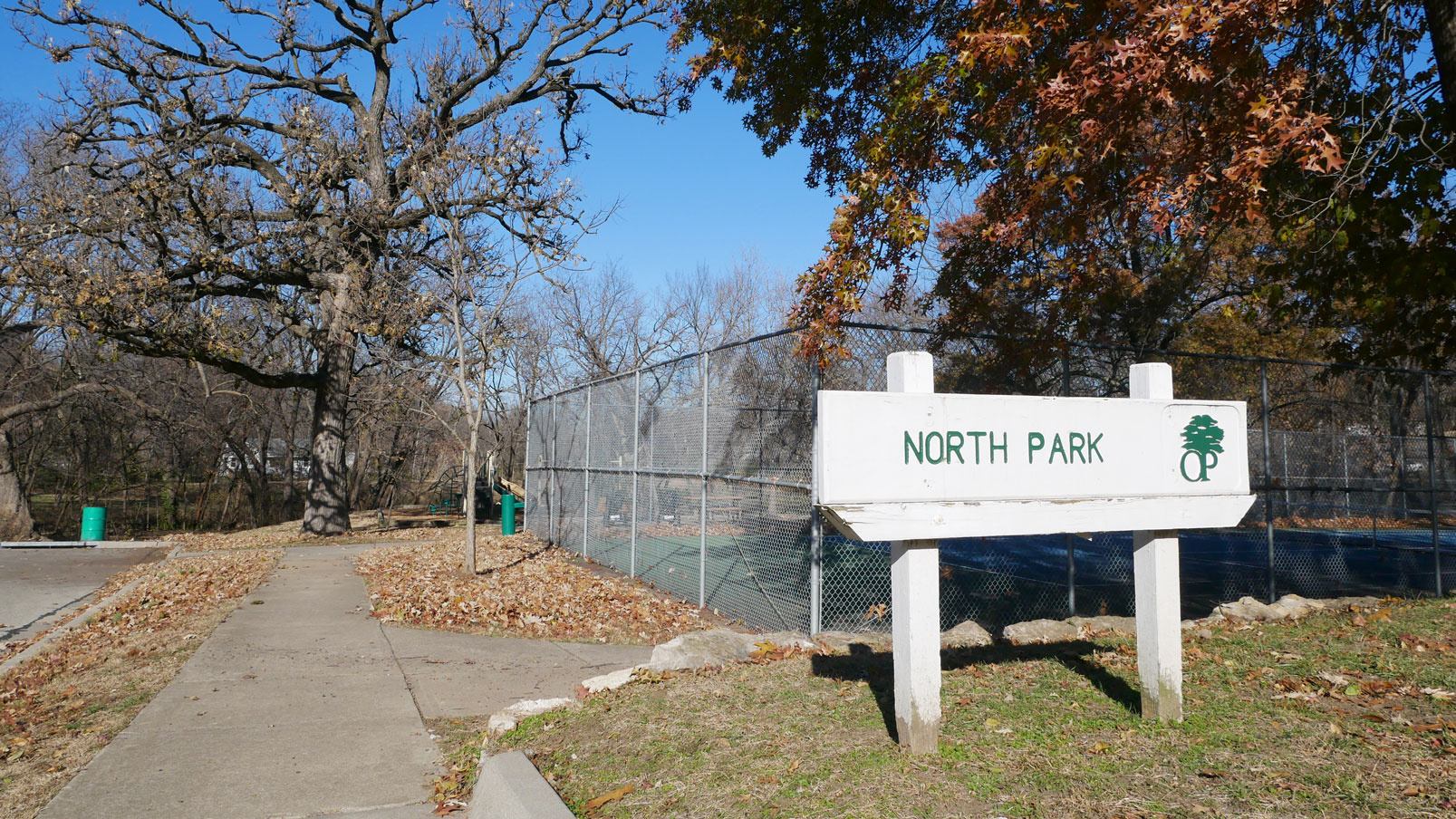 North Park is a 3.9-acre neighborhood park with tennis courts and a trail to explore that runs through a hilly area at the back of the park.