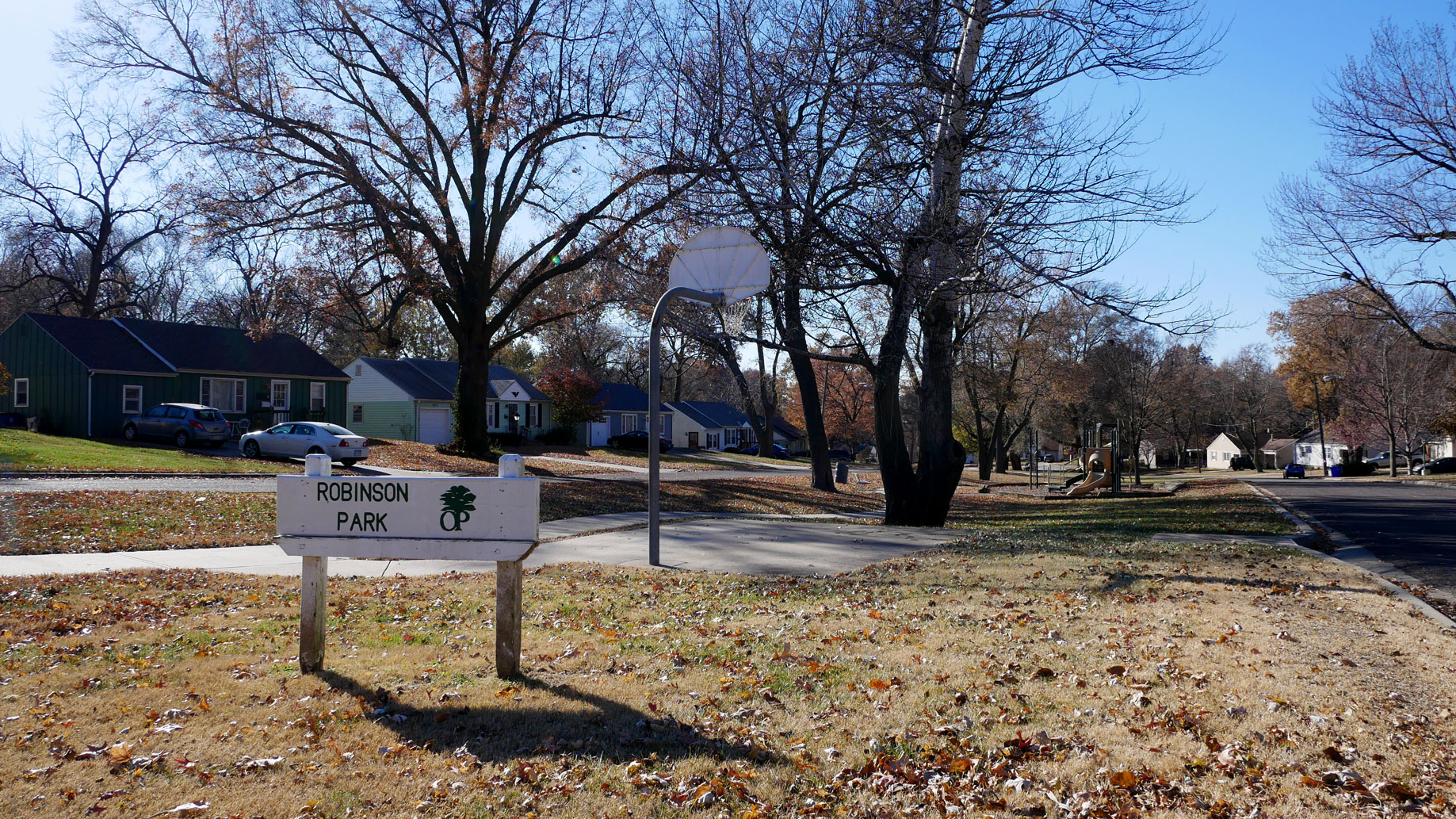 Robinson Park is a .25-acre play park just off Johnson Drive with access to nearby Shawnee Mission North High School.