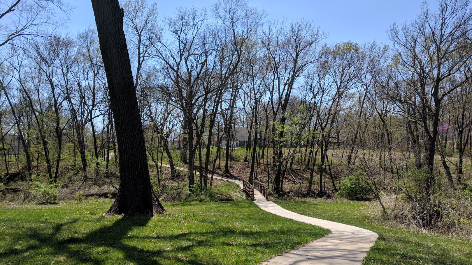 Sapling Grove Park features several historical informational panels, created in conjunction with the National Park Service and the Kansas City Area Historical Trails Association, that tell the history of the area.
