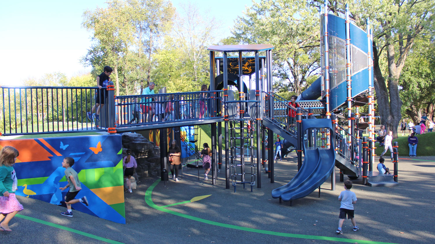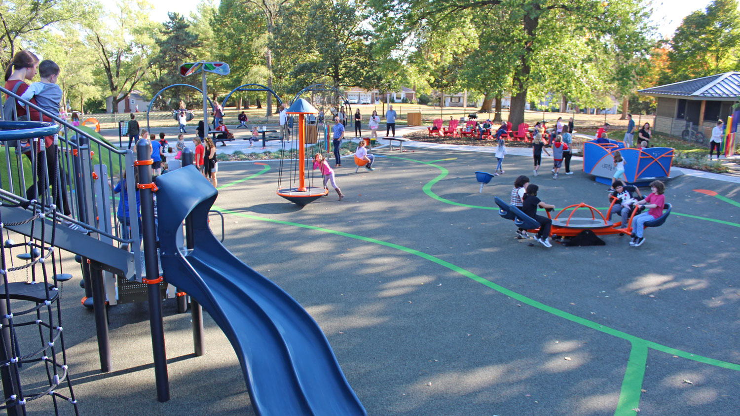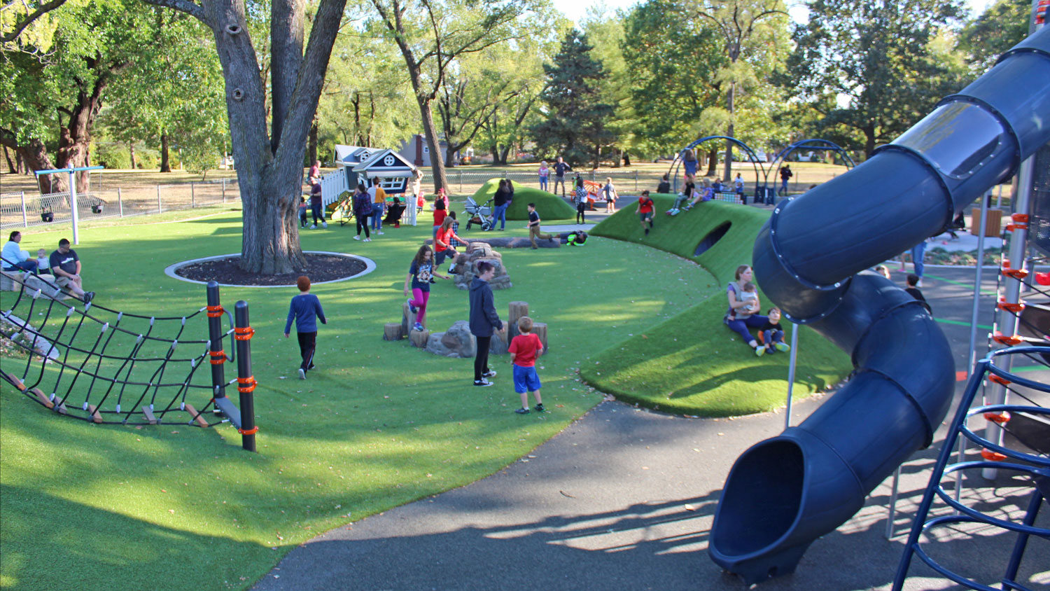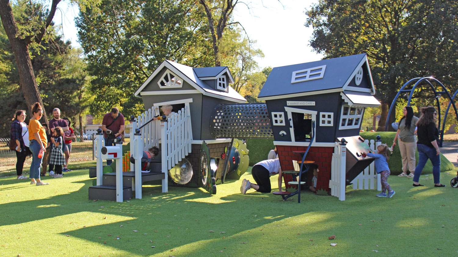 Strang Park is an 11-acre neighborhood park featuring an inclusive playground, family-friendly restrooms and gaming areas, historical markers, access to nearby amenities and more.