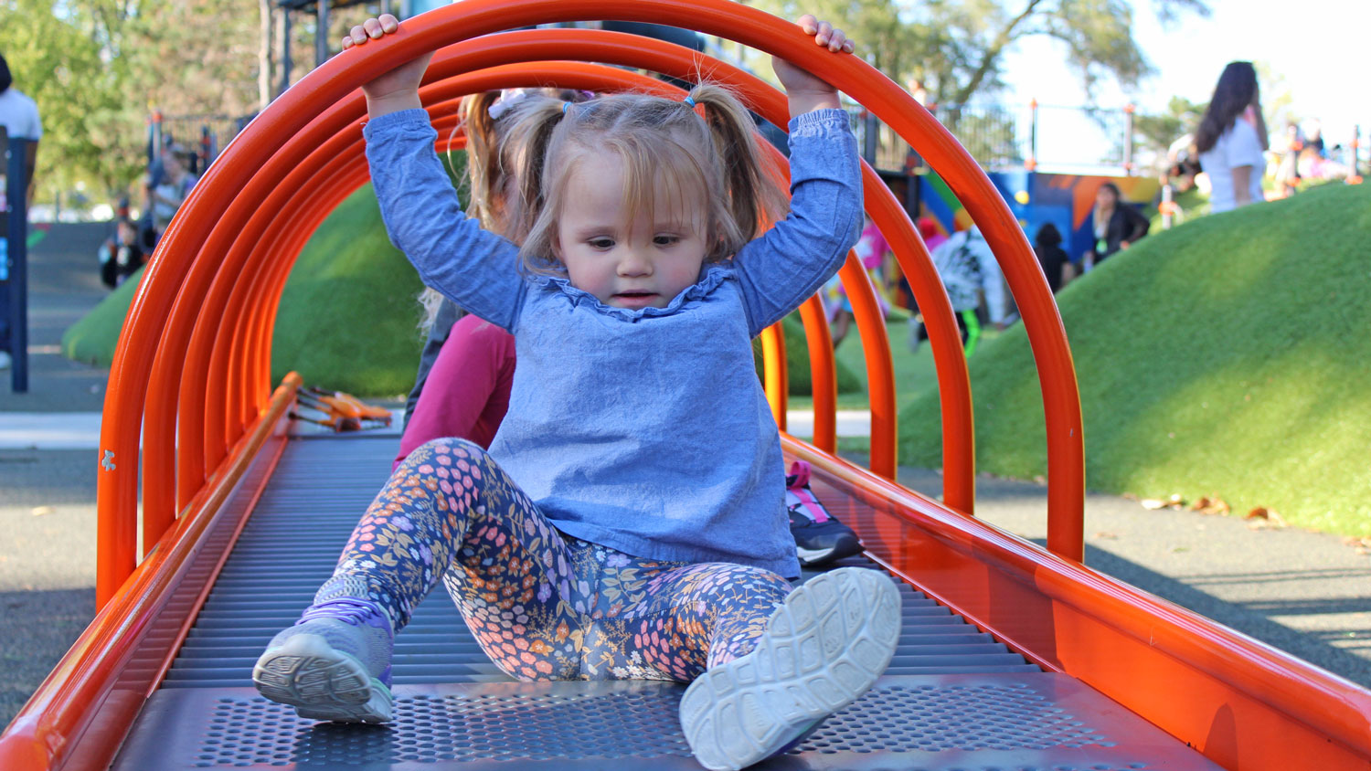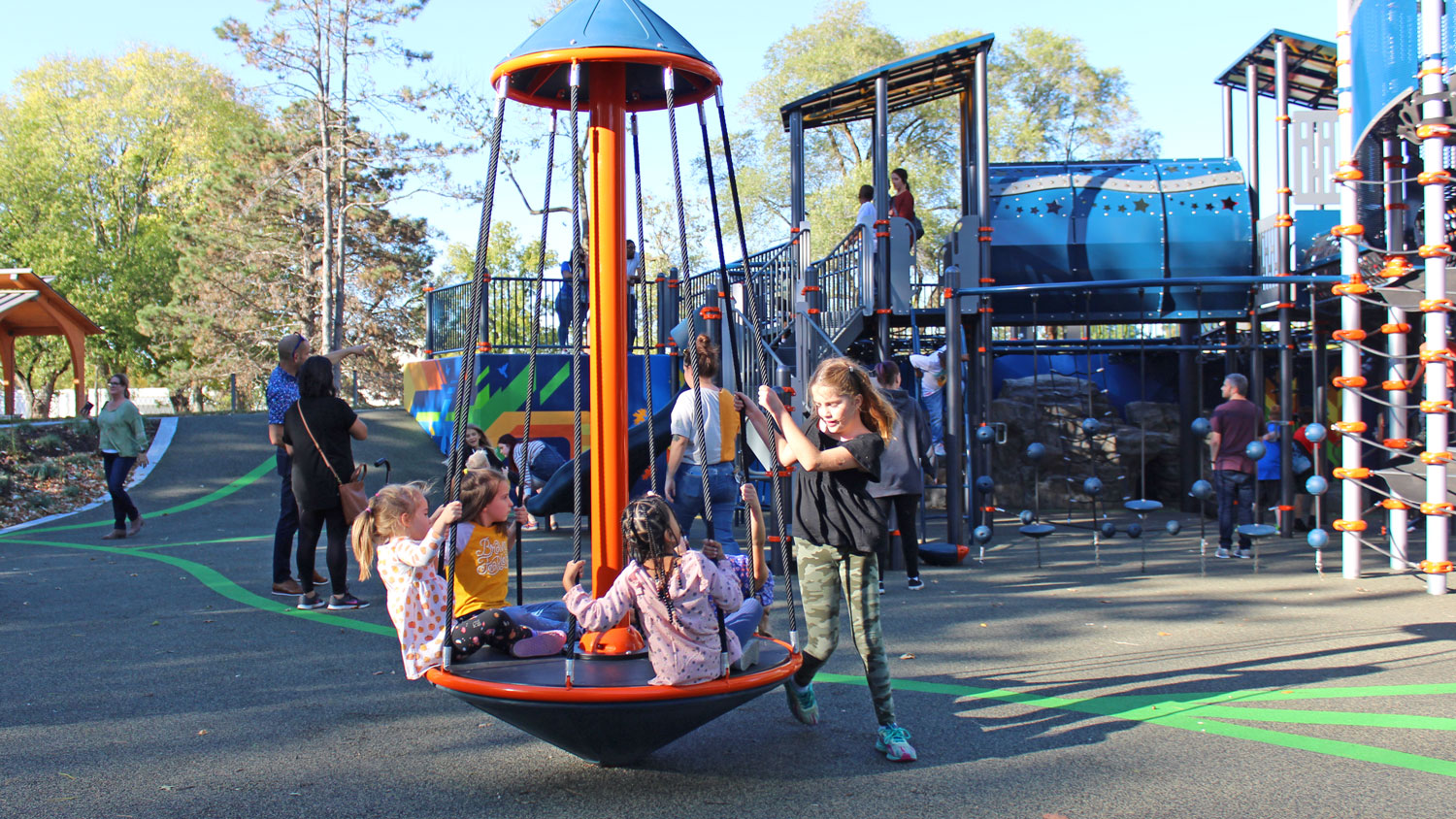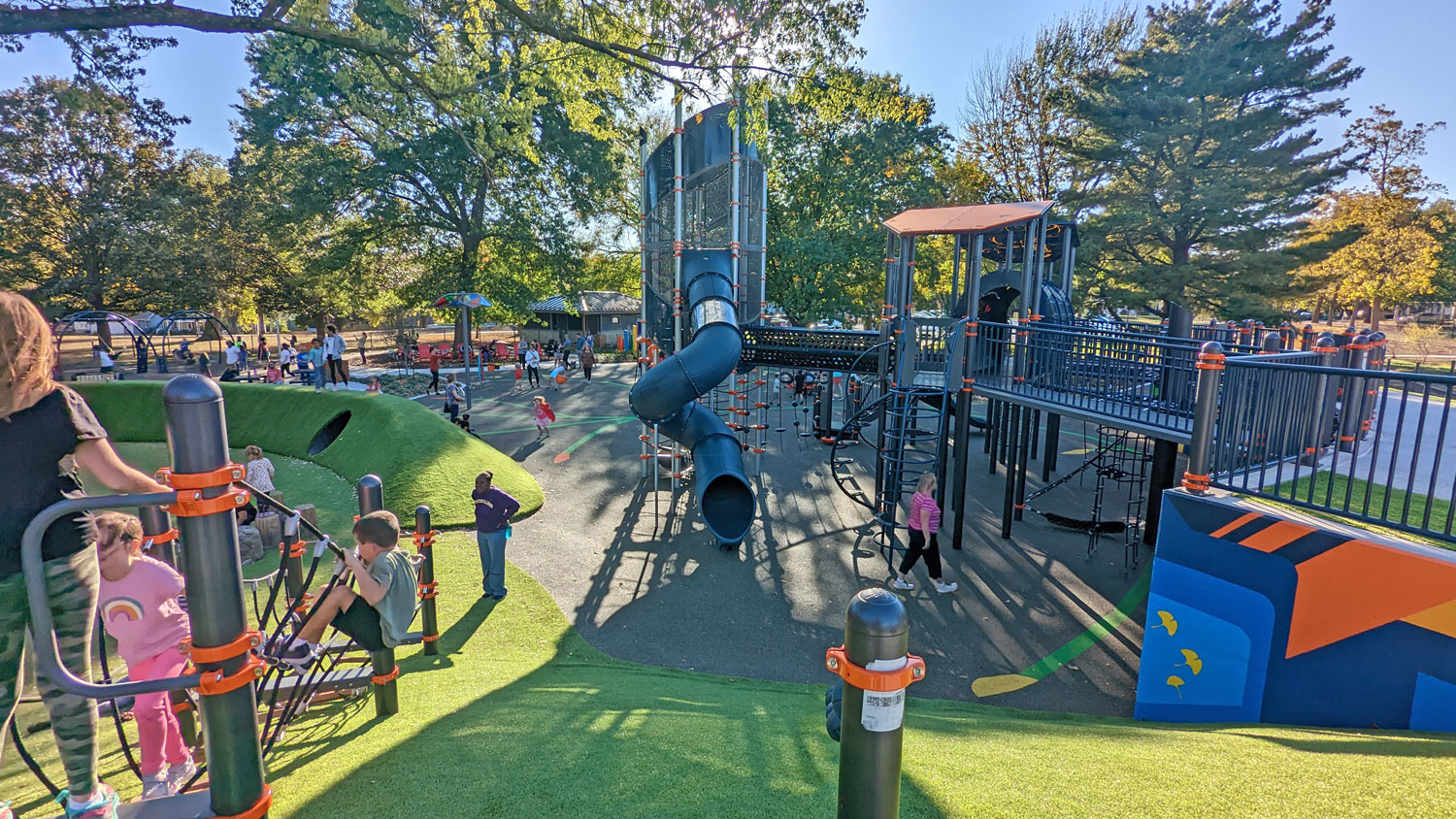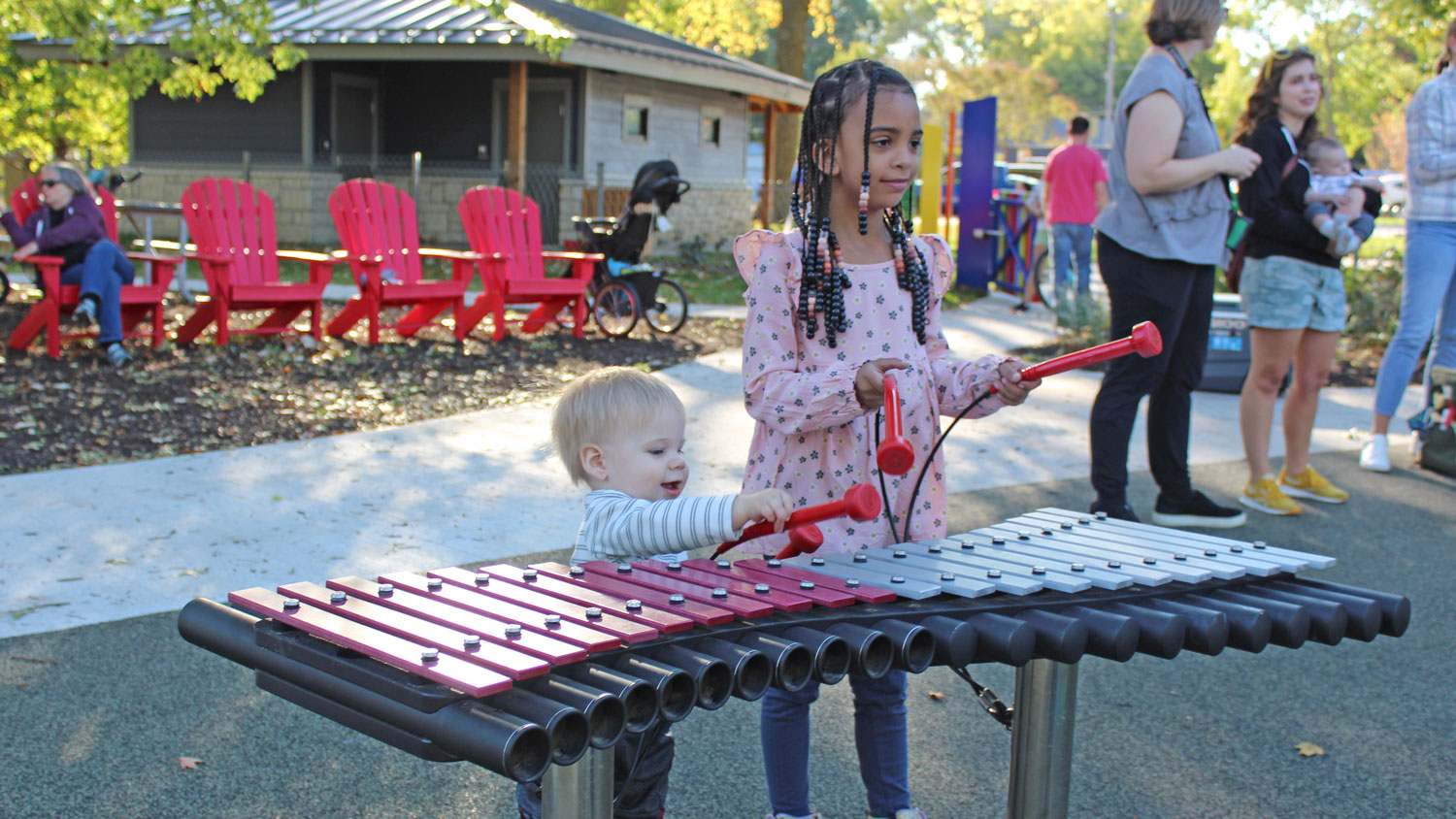 Strang Park is an 11-acre neighborhood park featuring an inclusive playground, family-friendly restrooms and gaming areas, historical markers, access to nearby amenities and more.