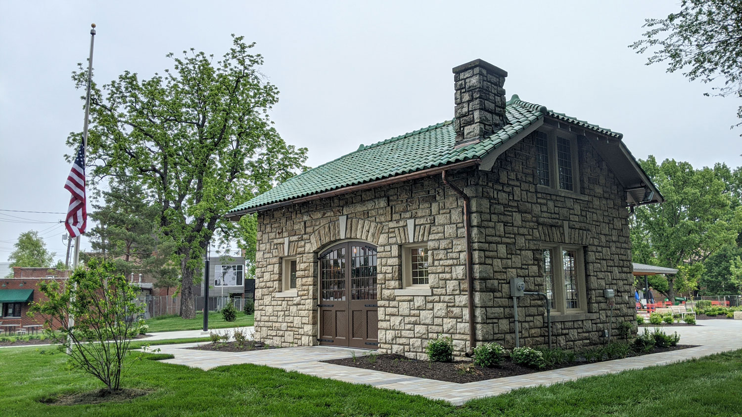 Overland Park founder William Strang built his carriage house on the property that is now Santa Fe Commons Park in the early 1900s to house his carriages and cars, and serve as a residence for his driver. The building’s interior was renovated in 2019 and 2020 and it will be available to rent for special occasions.