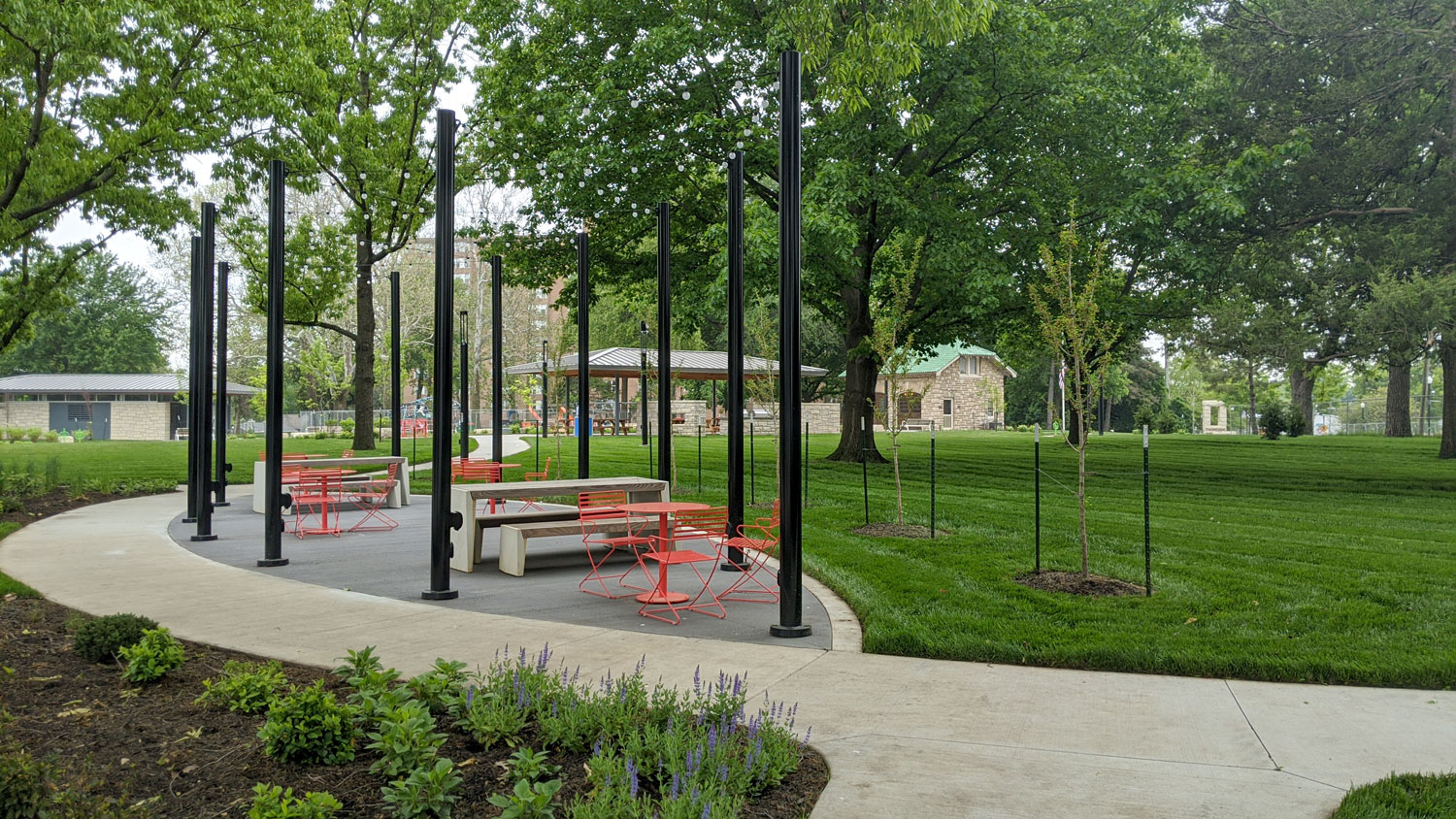 The City updated Thompson Park in 2019 and 2020 after receiving feedback from neighbors and park visitors. Thompson Park was renamed in honor of Downtown Overland Park business owners and philanthropists Frank and Evangeline Thompson.