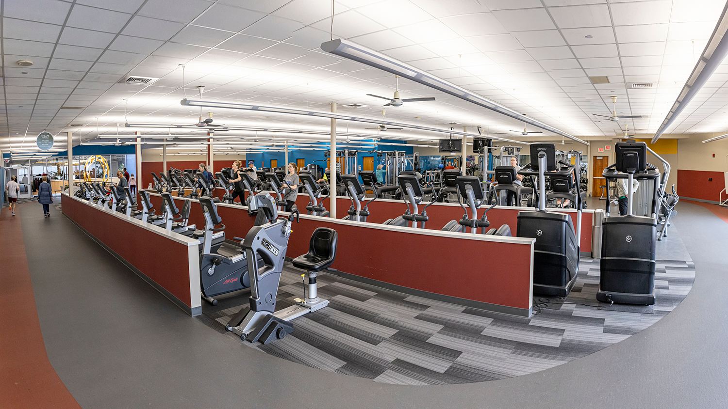 The fitness center has everything you need to move your way, from free weights and strength machines to treadmills, bikes, rowers and more. You can even take your workout to the two-lane indoor track, where ten laps make a mile.