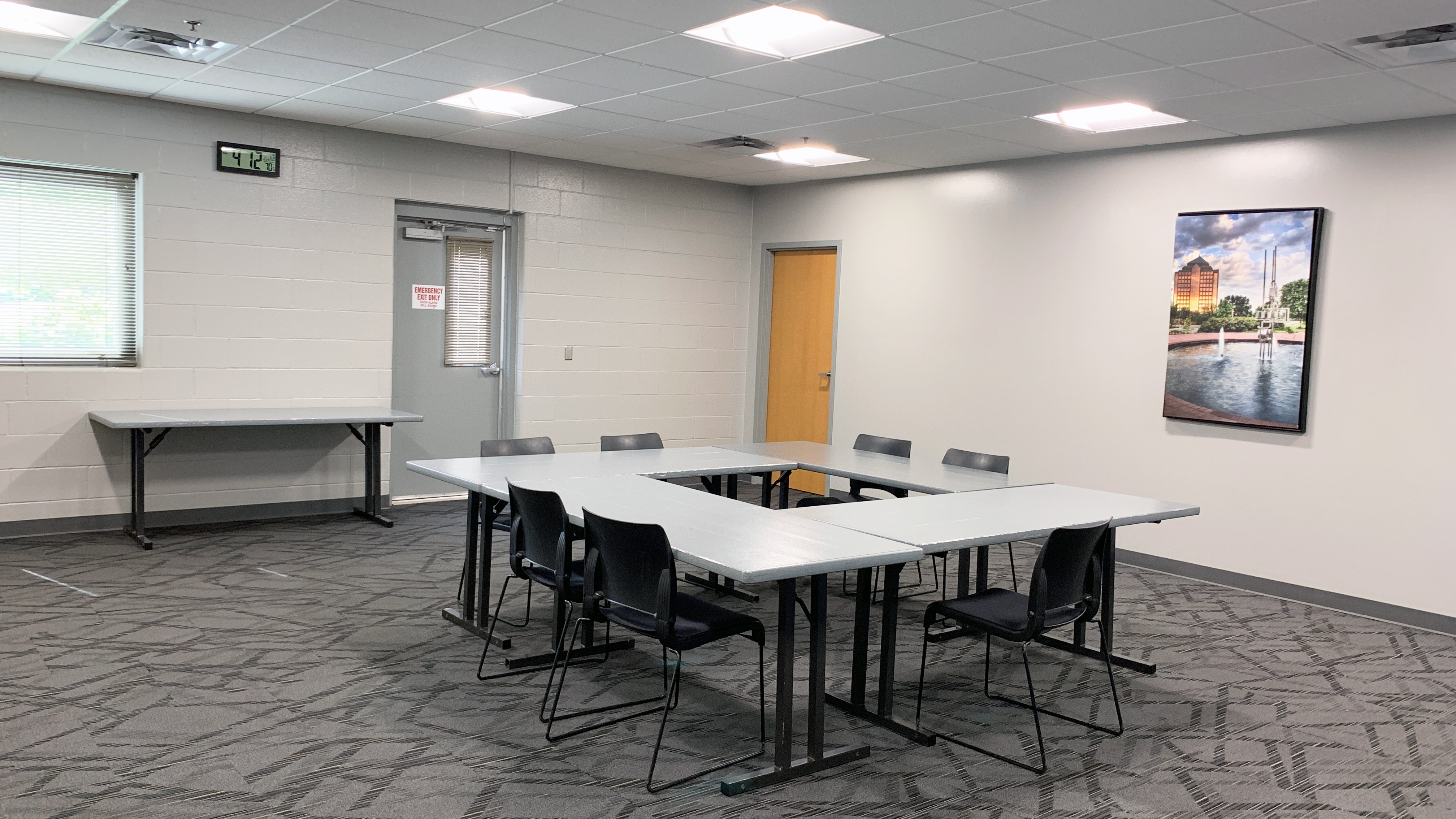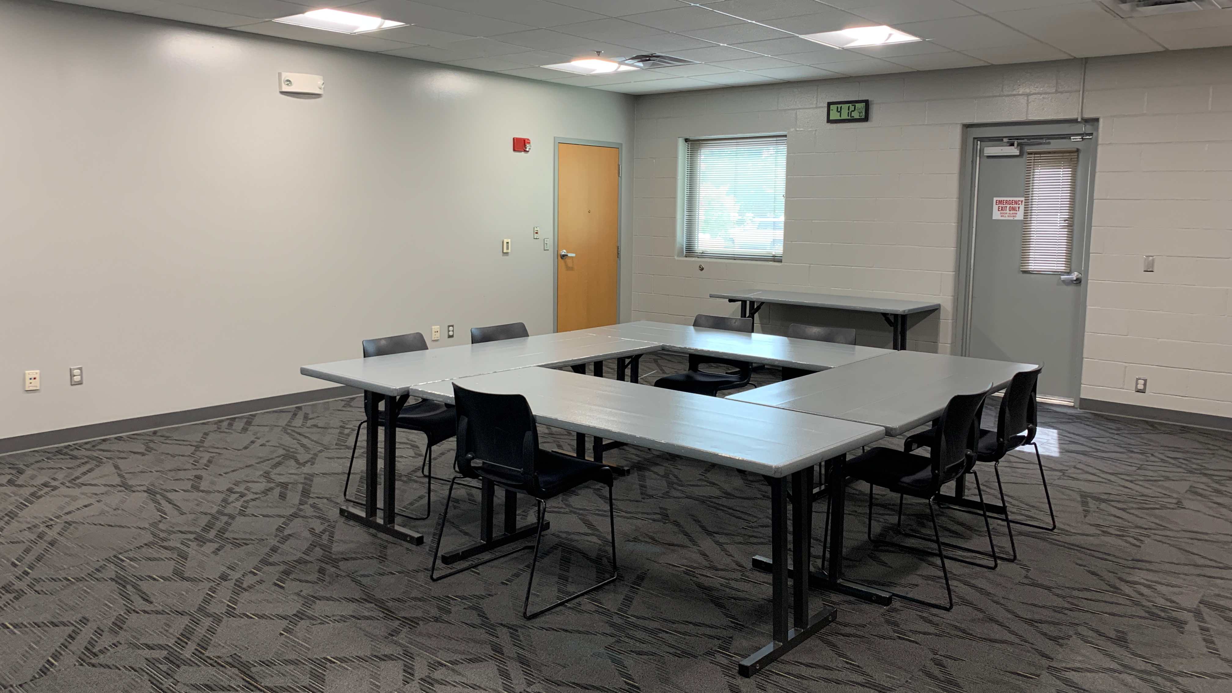 The conference room is a professional space for private meetings located on the northwest side of Tomahawk Ridge Community Center.